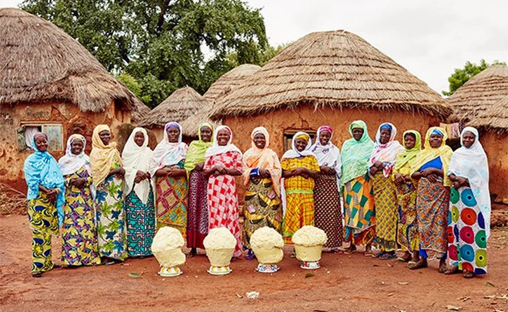 Sinds 1994 betrekken we sheaboter van Community Fair Trade van de Tungteiya Women's Association in het noorden van Ghana. 640 vrouwen uit 11 dorpen produceren de sheaboter in een proces van 18 stappen met behulp van traditionele technieken die al generaties lang van moeder op dochter worden doorgegeven.