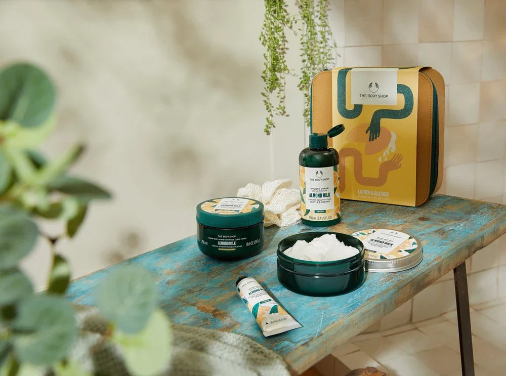 Degenen onder ons van wie het lichaam wat extra verzorging nodig heeft, kunnen de dode huidcellen zachtjes wegwrijven met de Amandelmelk Body Scrub. Schuim vervolgens op als een godin met een scheutje Amandelmelk Douchecrème. Het is speciaal ontwikkeld om de natuurlijke vochtbarrière van uw huid te beschermen. Zodra je bent opgedroogd, trekt de voedende Amandelmelk Body Yogurt snel in, waardoor je huid gekalmeerd en stralend wordt van vocht. Dan kun je meteen beginnen, kampioen!