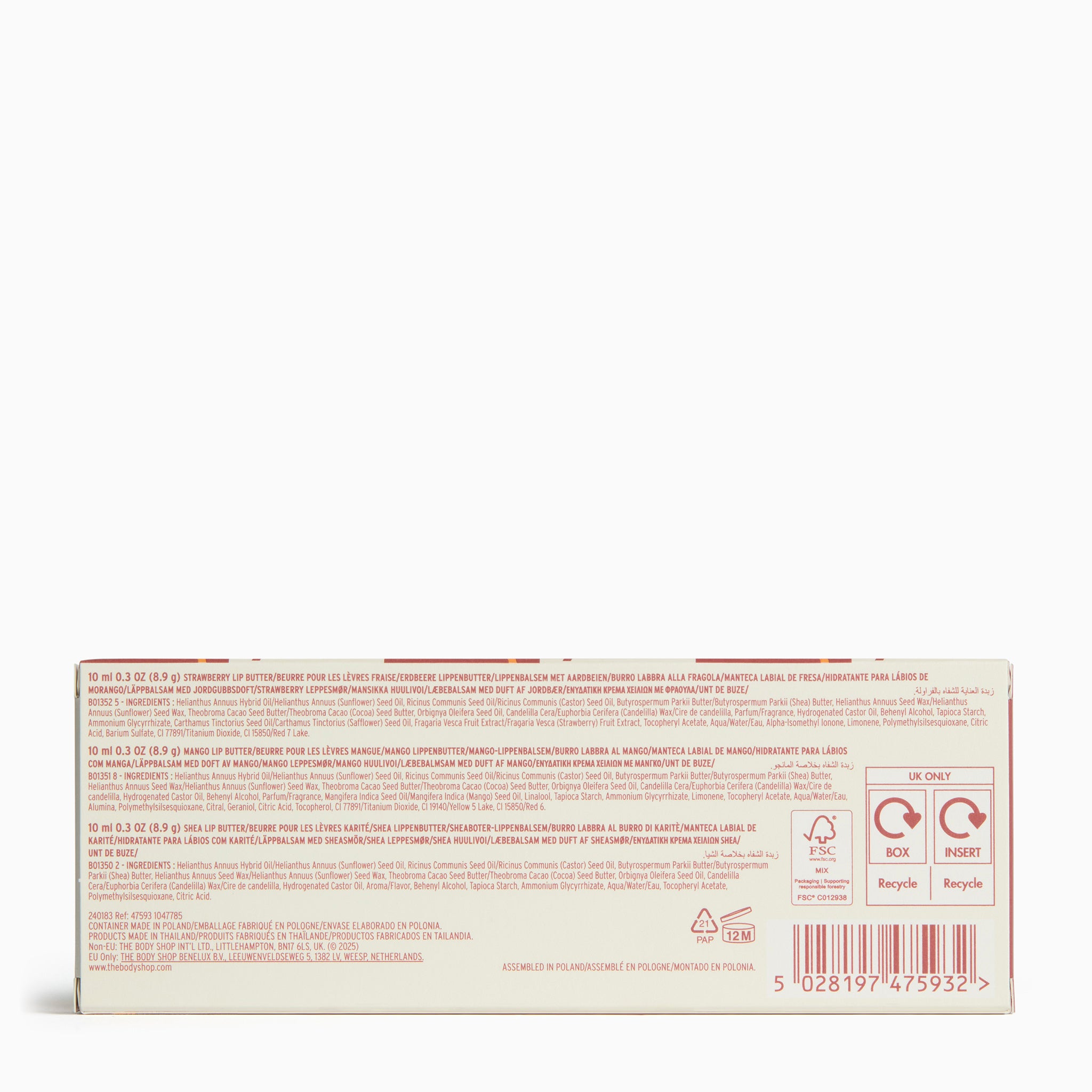 Elk van de hydraterende lippenboter in dit trio is verrijkt met sheaboter uit Ghana, die afkomstig is uit eerlijke handel. Het verzacht droogheid en geeft je lippen de verzorging die ze verdienen. Alle producten zijn superverzorgend en maken je lippen zacht zonder ze te kleuren. Ze geven ze een lichte, natuurlijke glans.