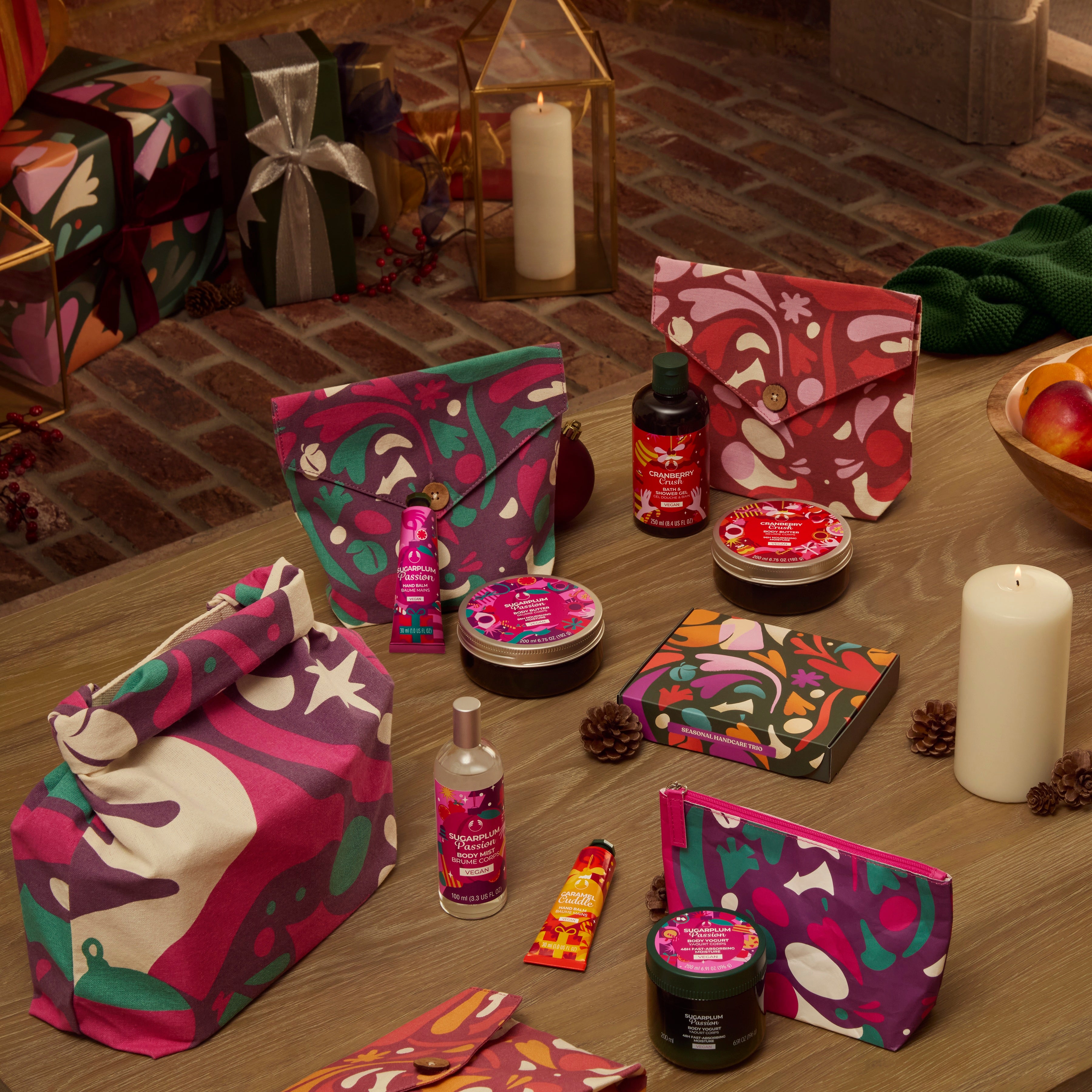 Met een selectie van verzorgende producten, verrijkt met fairtrade sheaboter uit Ghana en fairtrade aloë vera uit Mexico, maakt het de huid zacht, verlicht het droogheid en verzorgt het de huid, terwijl het de lucht vult met de feestelijke, rijke en verkwikkende geur van rijpe pruimen.Deze cadeauset bevat: